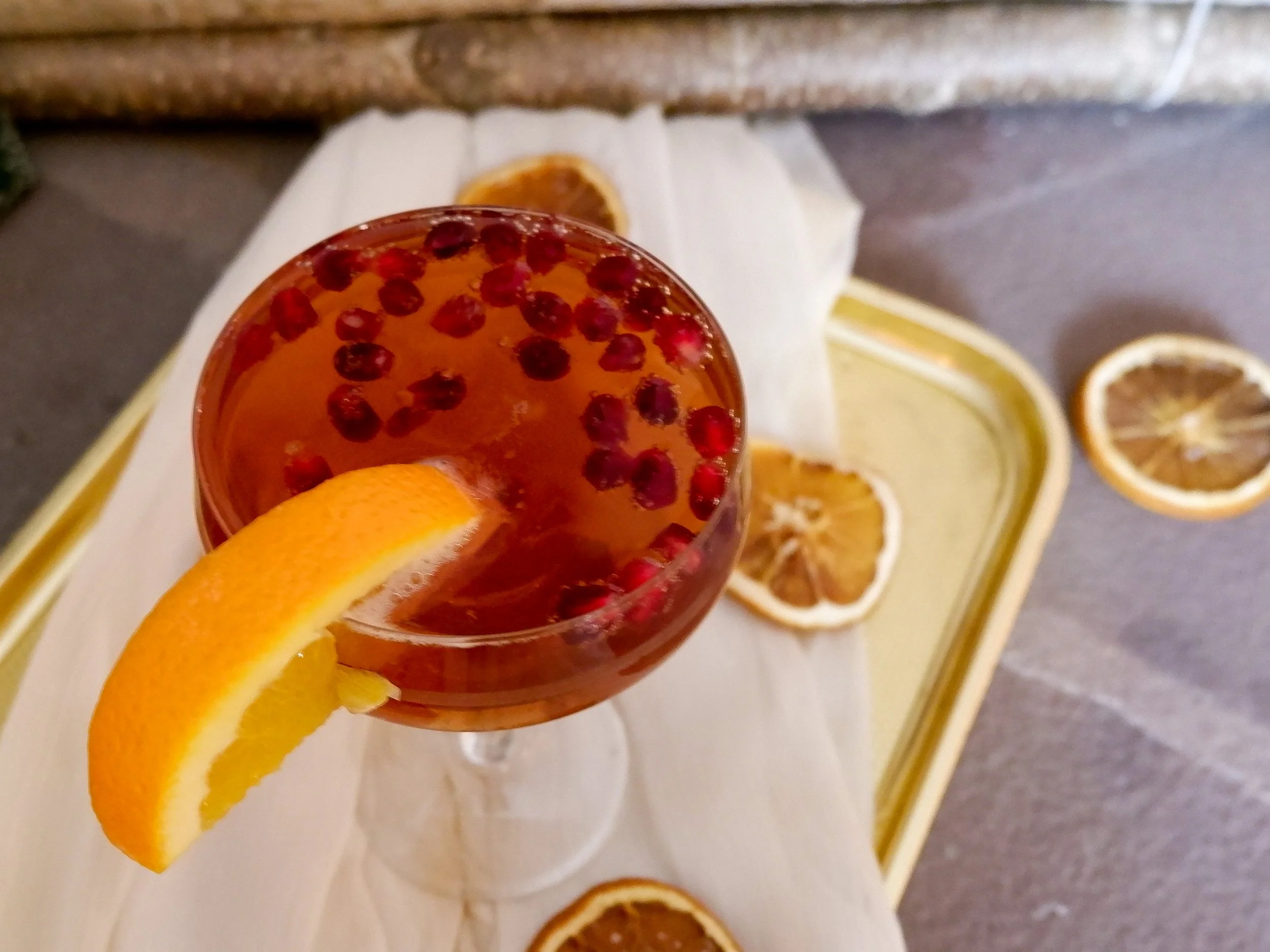 - (Optional) garnish with fresh or dehydrated orange slices and pomegranate seeds