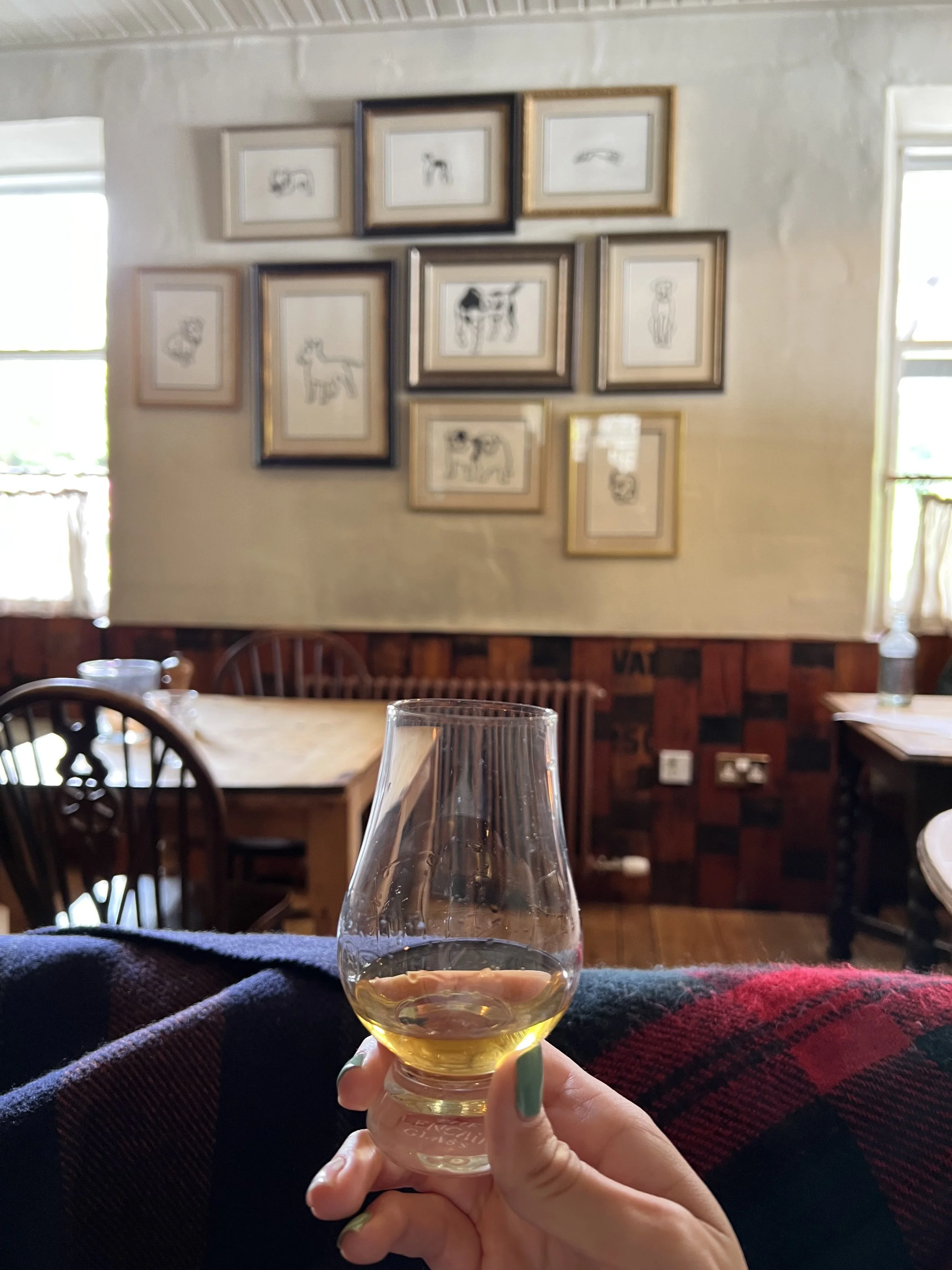 The tasting was really enjoyable and took place in a wam and inviting room. We were offered three different scotches to try and a Johnny walker black and ginger ale highball. Another thing I really appreciated about this tasting was how they offered small tasting bottles to go and a non-alcoholic version of the highball from Seedlip for those who were driving. We didn’t have to drive after this as we were staying at the nearby Cardhu Country House, but this was thoughtful as many people on the whisky trail drive through to many in one day and are often given the choice between skipping a tasting or perhaps taking too much of a risk.
